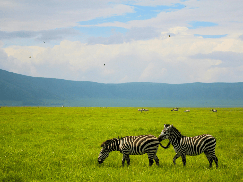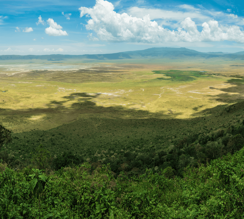 The Ngorongoro conservation area in northern Tanzania covers an area of 8,300 square kilometres. The nature reserve includes very diverse habitats: open grasslands, dense mountain forest, scrubland and heathlands. The Ngorongoro Crater is the main attraction of this area and is often referred to as the “eighth wonder of the world”. The crater is 610 meters deep and covers an area of about 260 square kilometers. The crater basin is the habitat of about 25,000 animals all year round. These include the so-called Big Five (lion, elephant, leopard, buffalo and rhinoceros) and many other species, with the exception of giraffes. It is also referred to as the largest zoo in the world.